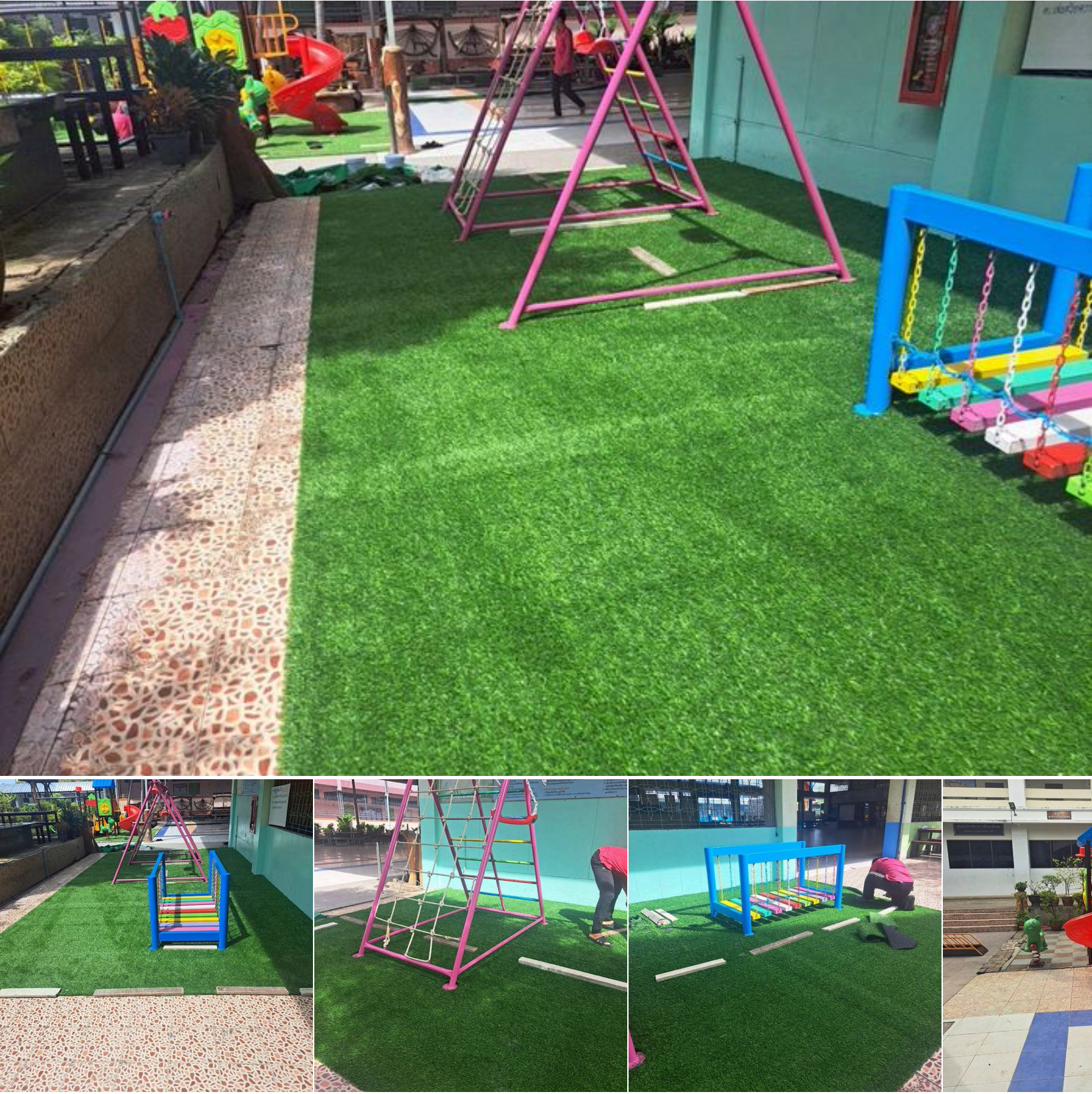 🌱 หญ้าเทียมมีขนาดหนา เหมาะสำหรับพื้นที่ที่มีเด็ก