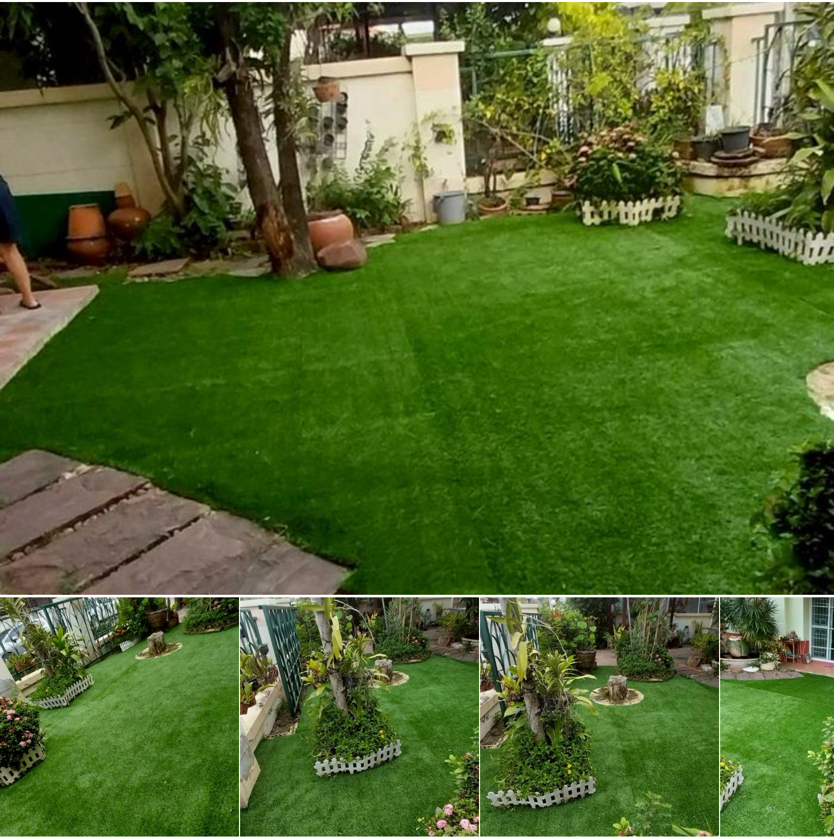 🌱 หญ้าเทียมมีขนาดหนา เหมาะสำหรับพื้นที่ที่มีเด็ก