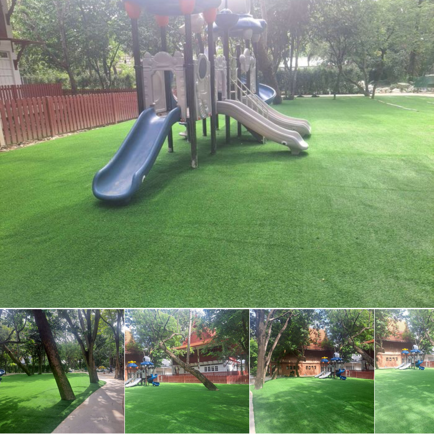 🌱 หญ้าเทียมมีขนาดหนา เหมาะสำหรับพื้นที่ที่มีเด็ก